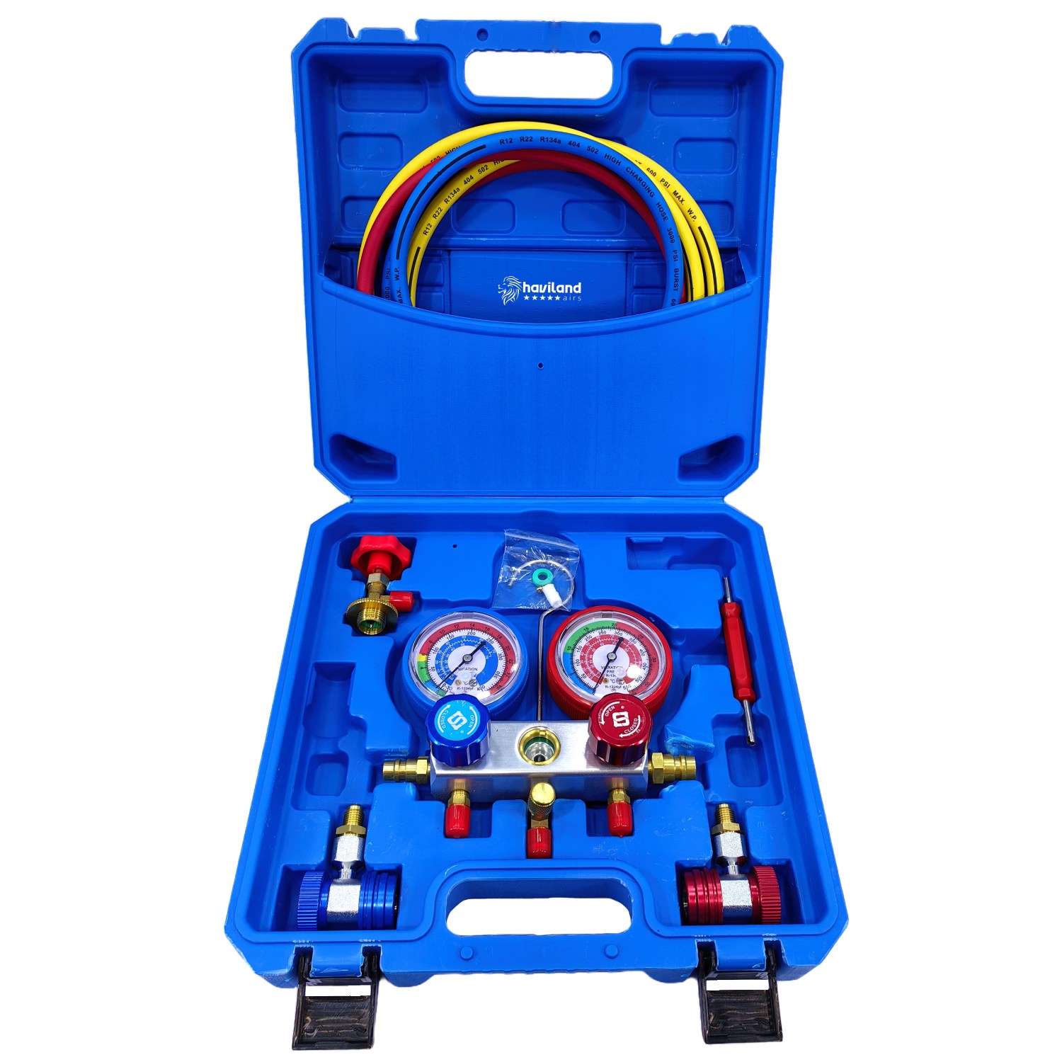 Juego De Manómetro R134A Con su Maletín (Incluye Adaptadores De Alta Y Baja, Extractor de Gusanillo y Valvula Para Latas De Gas)